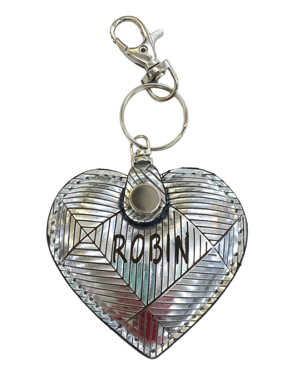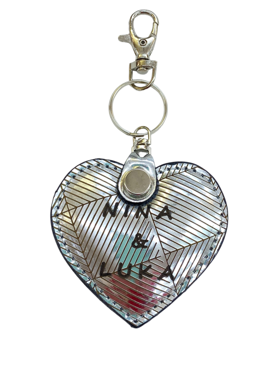 - Custom leather heart keychain SILVER SQUARES