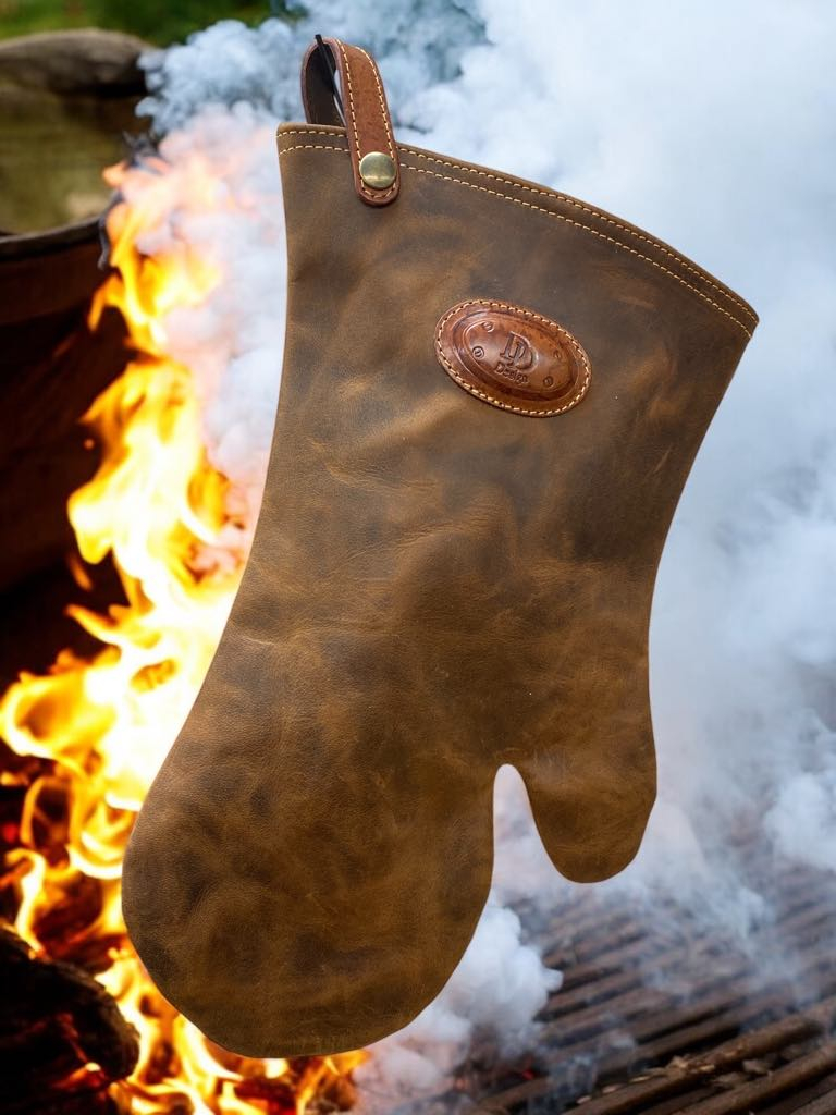Leather glove made of 100% cowhide leather and lining. The glove is fire resistant and therefore suitable for grill, stove, fireplace, oven....