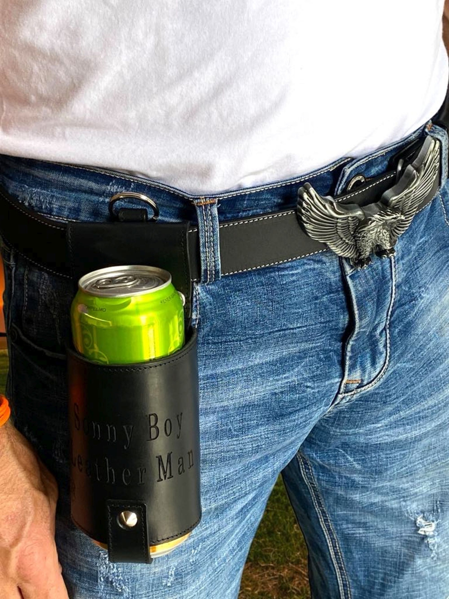 Beer holster with custom engraving is a perfect gift.