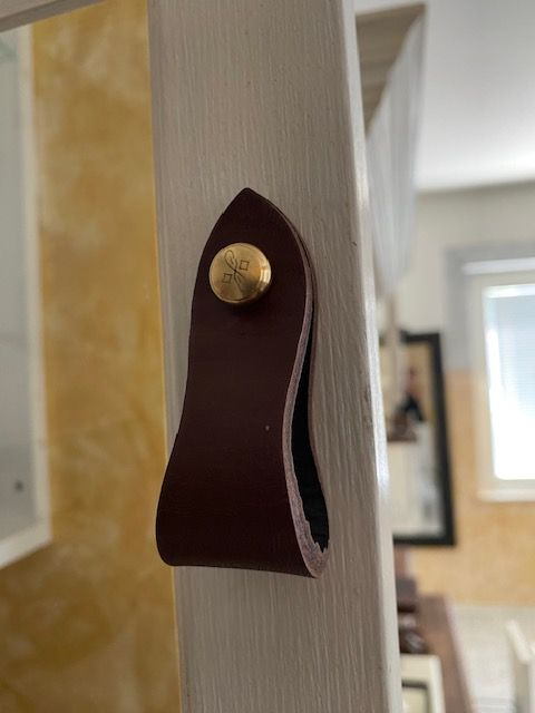 - Leather door handle Amor antique Engraved screws