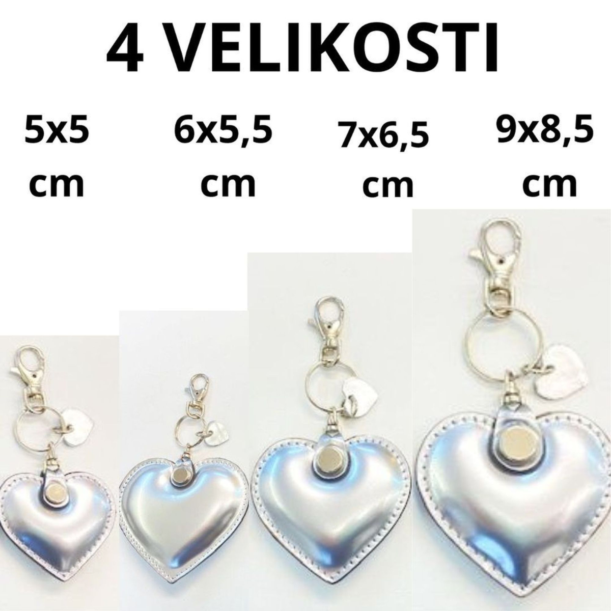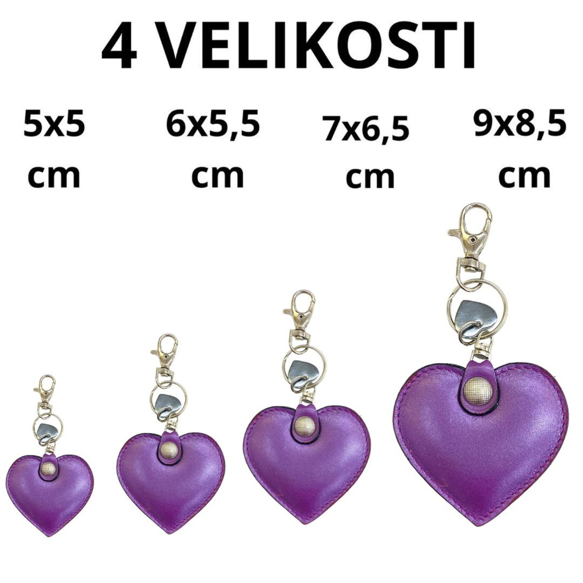 - Leather keychain heart VIOLET or SILVER 4 sizes