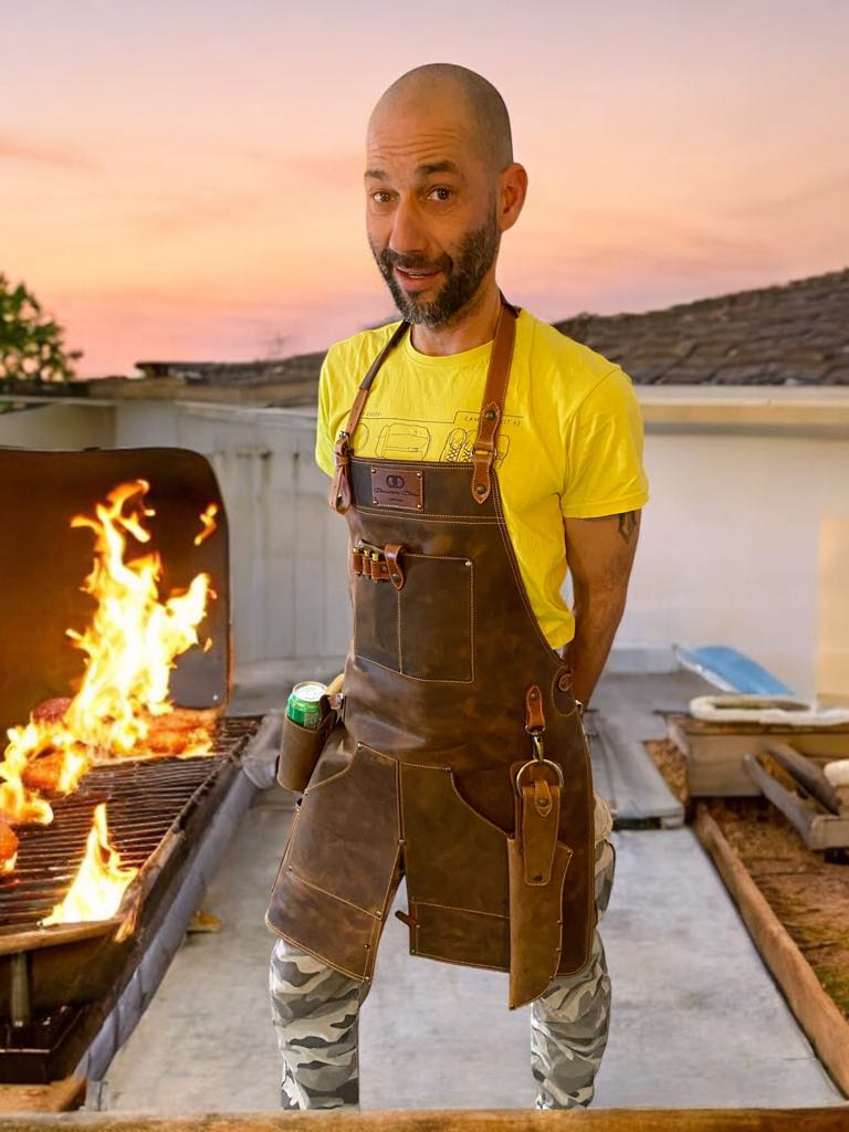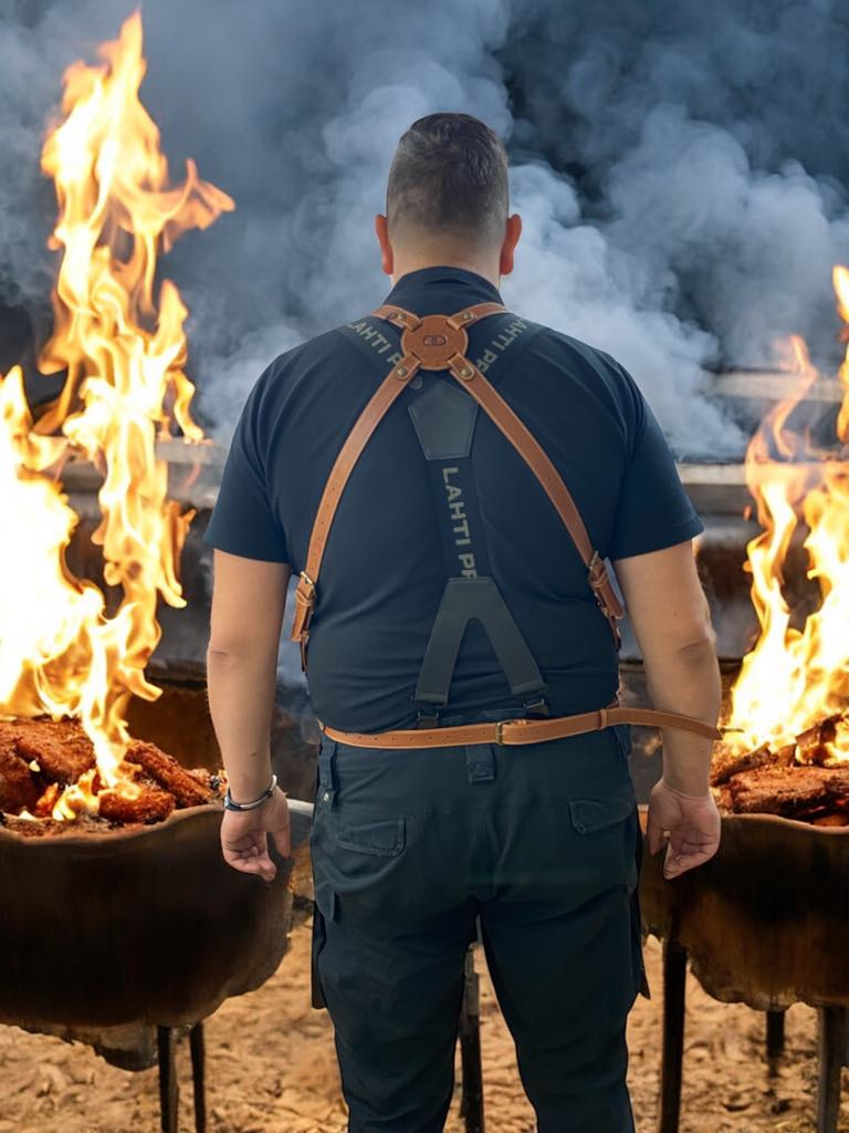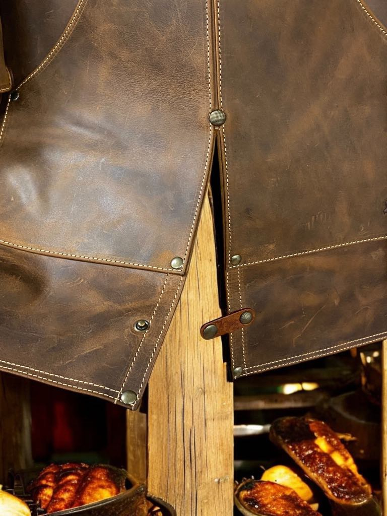 A leather apron is an excellent choice for protection against grease, barbecue sauces and heat protection. It is made from a single piece of high-quality leather.
