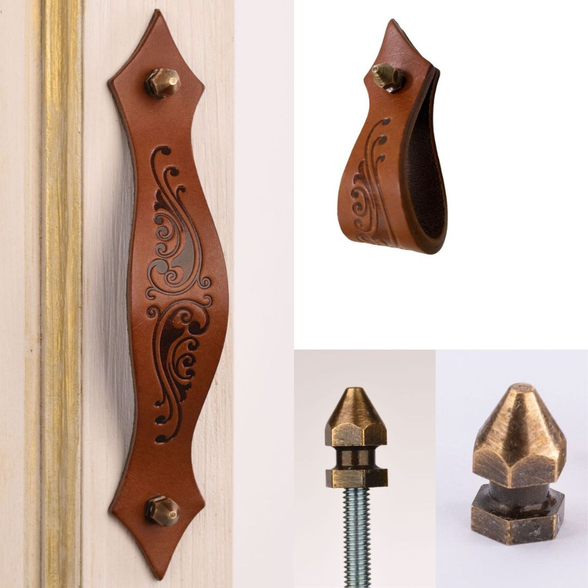 - Rustic leather Handle Kupid antique hexa screws