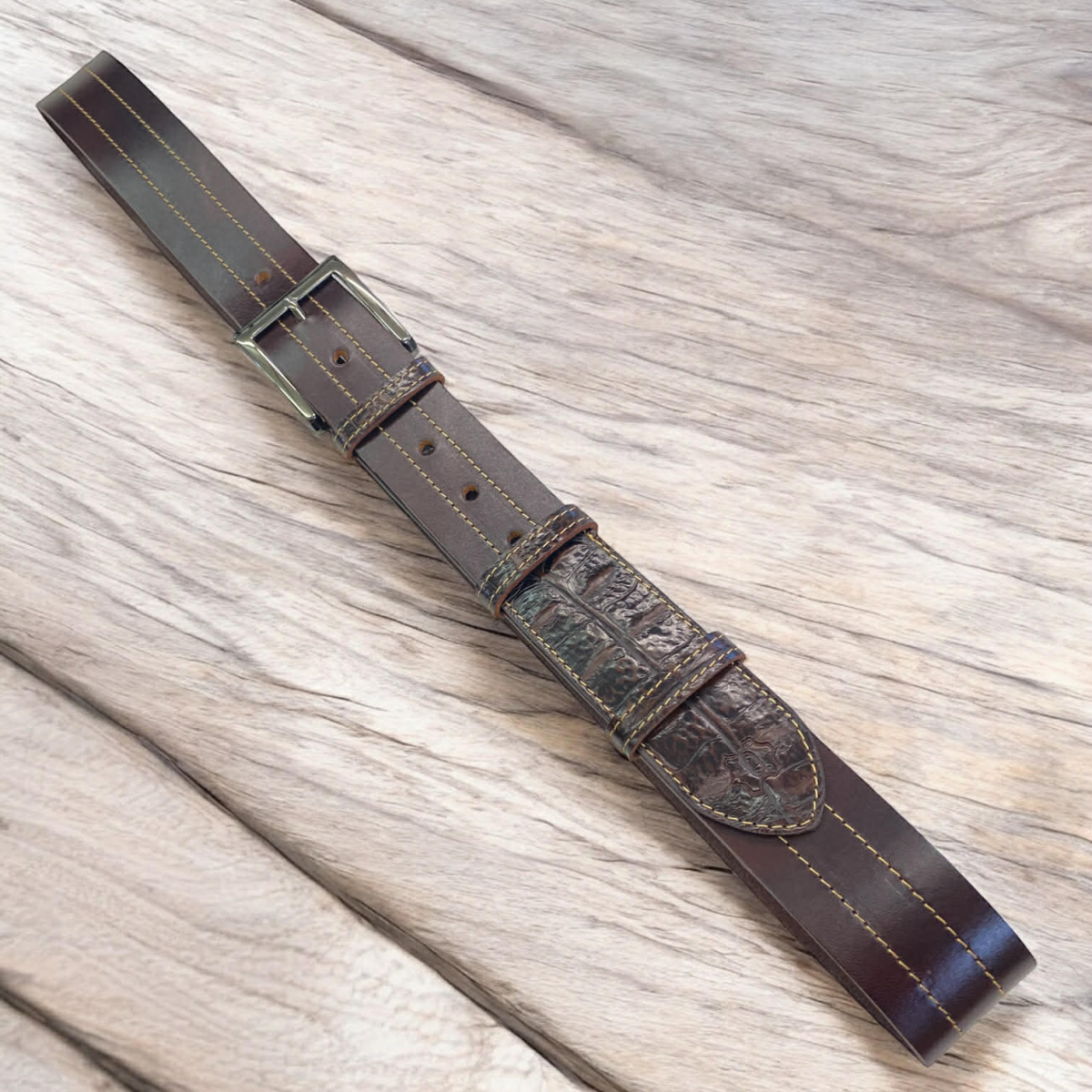 Usnjeni pas Elite rjavi krokodil 3,5 cm
