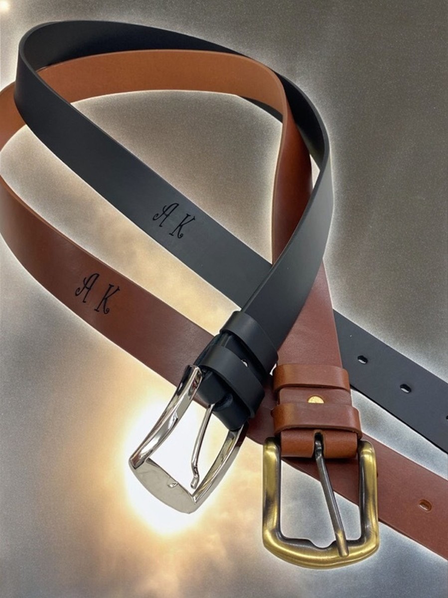 Personalizacija na usnjenih pasovih je izvedena z lasersko gravuro.