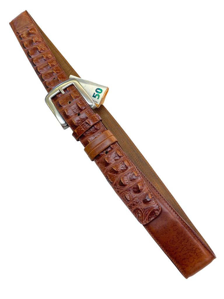 - Krokodil usnjeni pas s skrito zadrgo 4,3 cm