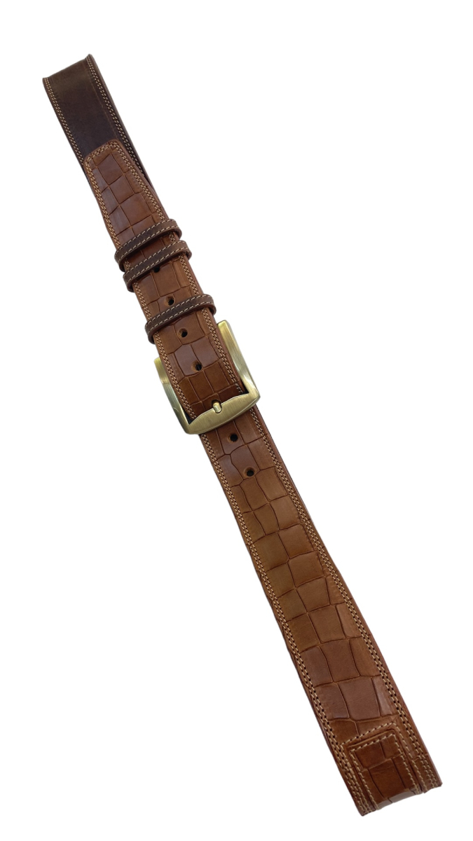 Usnjeni rjavi pas z imitacijo krokodila 3,5 cm