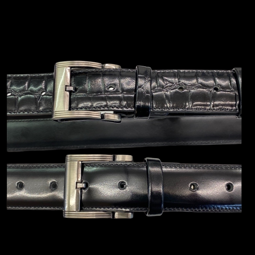 Pas je izdelan iz gladkega govejega usnja, v kombinaciji z odlično imitacijo krokodilje kože.
