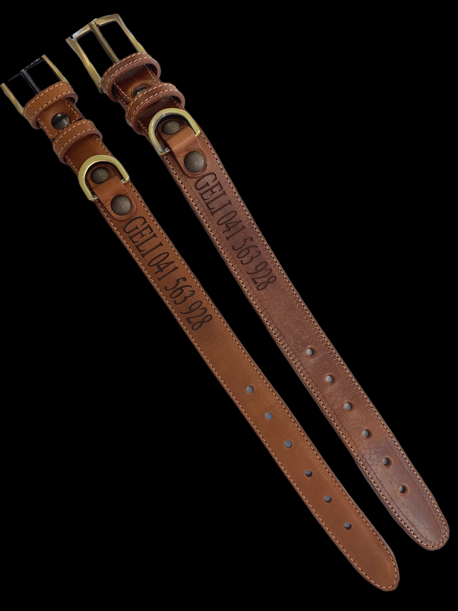 Udobna in trpežna ovratnica izdelana iz usnja vegetabil. Barve usnja in gravura po naročilu.