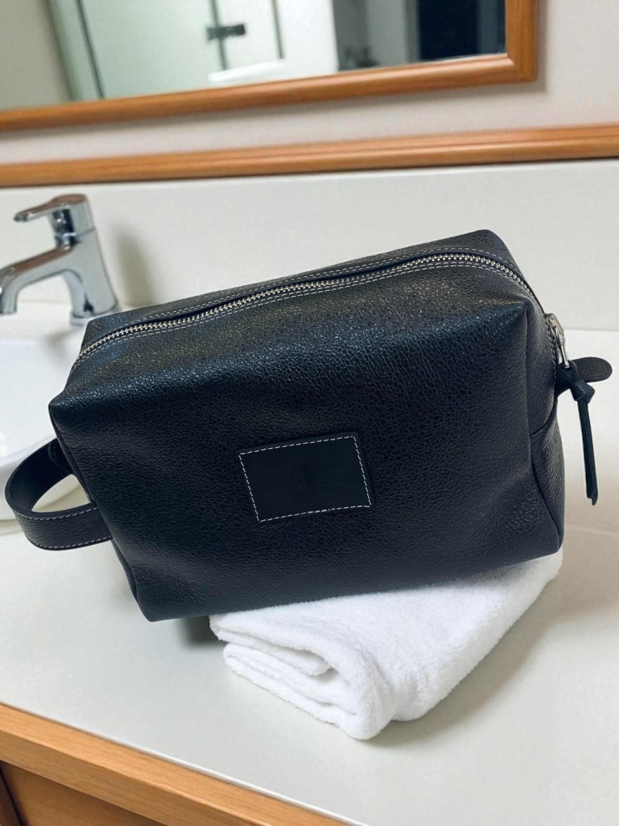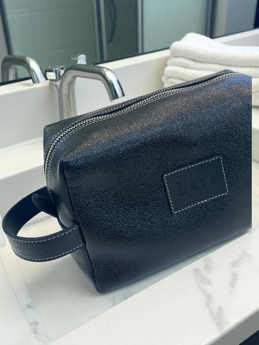 - Personalizirana usnjena toaletna torbica velika