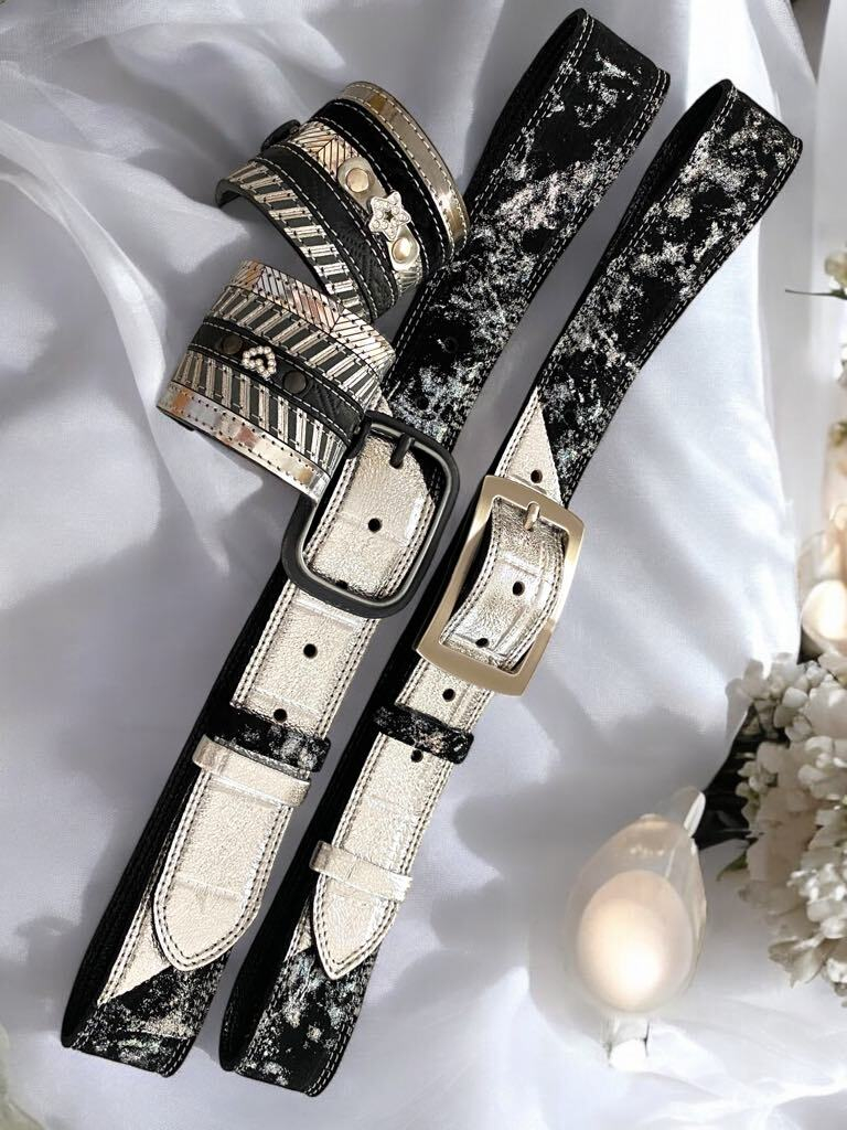 DDDesign usnjena torbica ima tanjše ročaje z vstavljeno vrvico, kateri preprečujejo drsenje iz rame. Na otip je mehka in nežna. Zraven torbice lahko naročite tudi pas in zapestnico ( na sliki ).