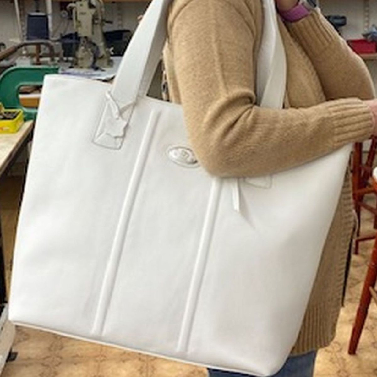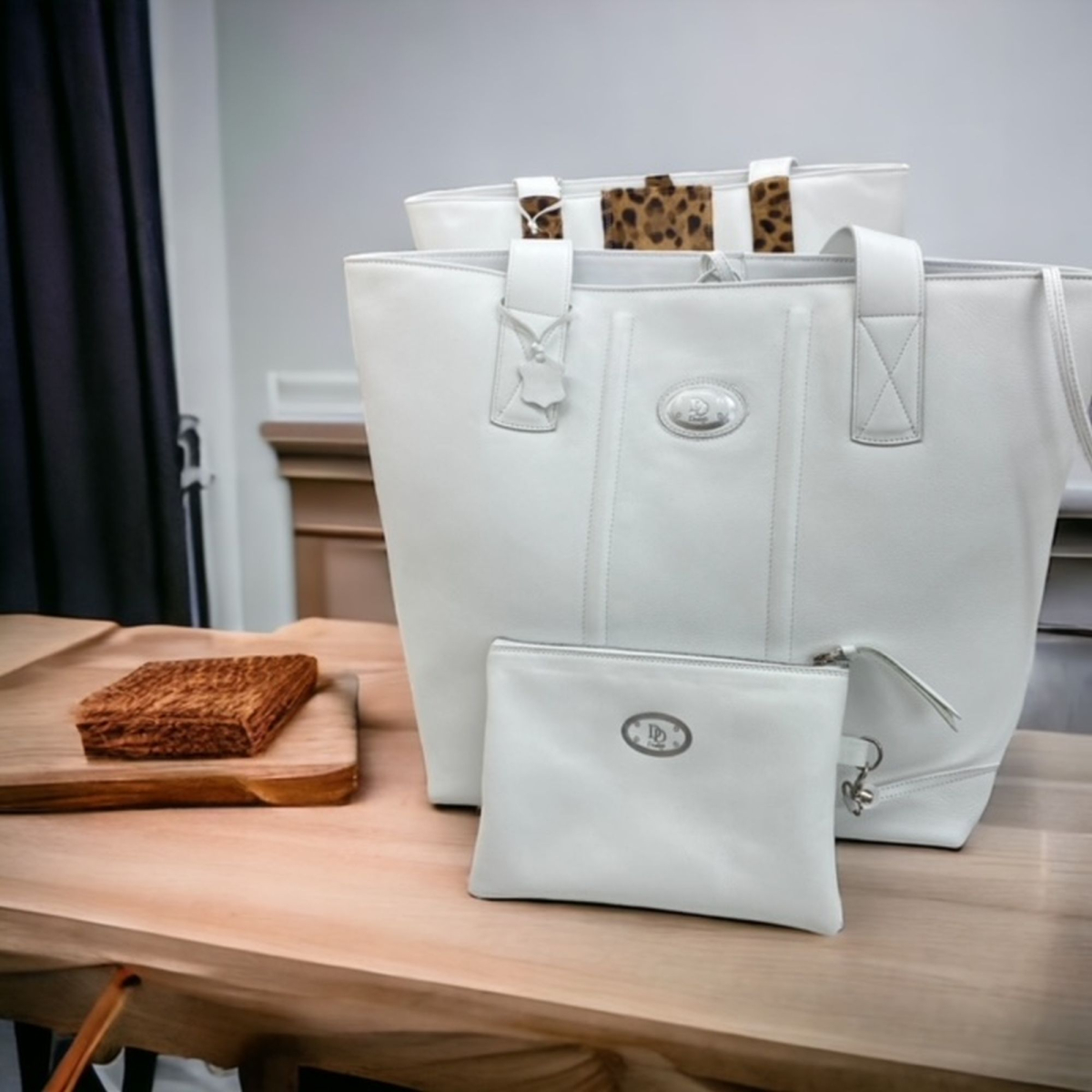 Unikatna torbica, v celoti izdelana iz govejega usnja. Na hrbtem delu se pod zadrgo nahaja prostoren žep. Prav tako sta dva žepa z zadrgo vstavljena tudi v notranjem delu.