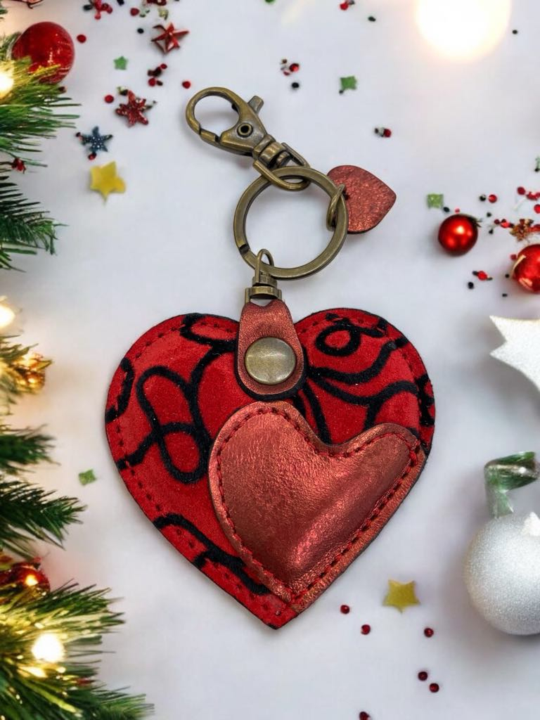 Usnjeni obesek DVOJE SRC Amur rdeči