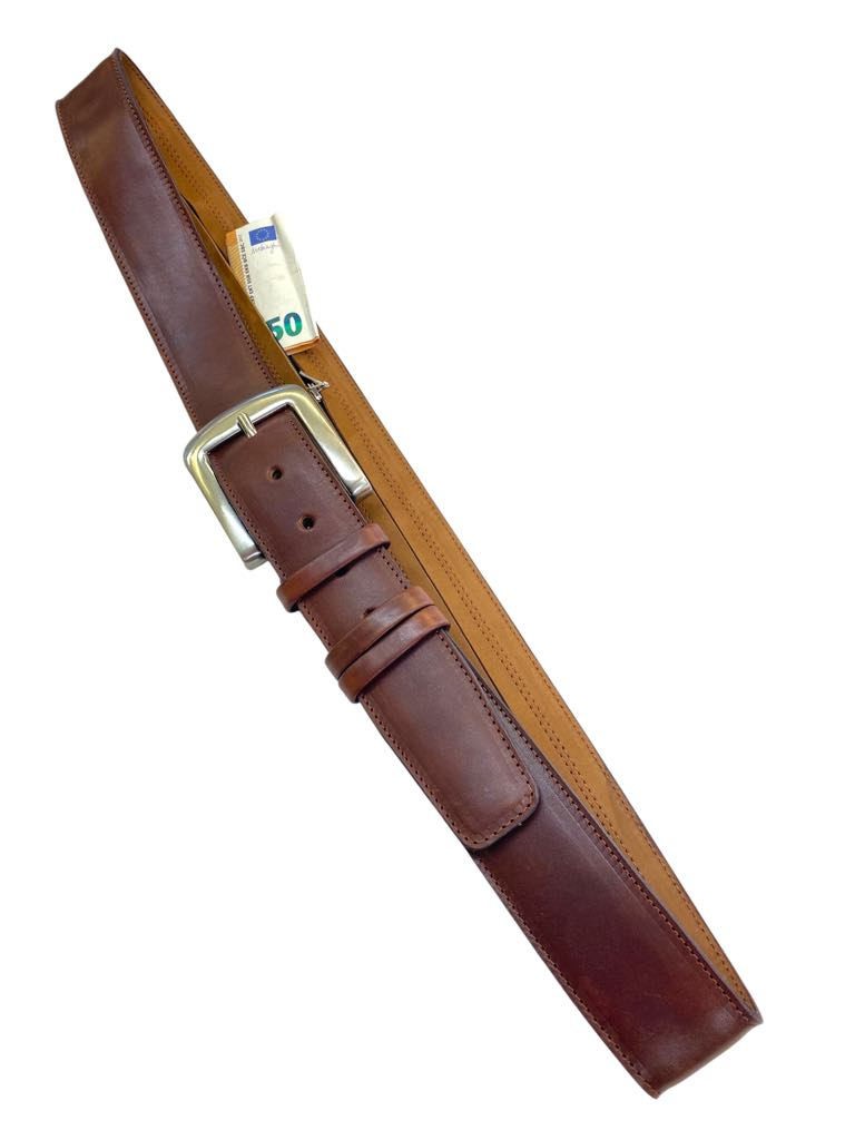 Usnjeni pas s skrito zadrgo, 3 slojni pas denarnica 4,3 cm