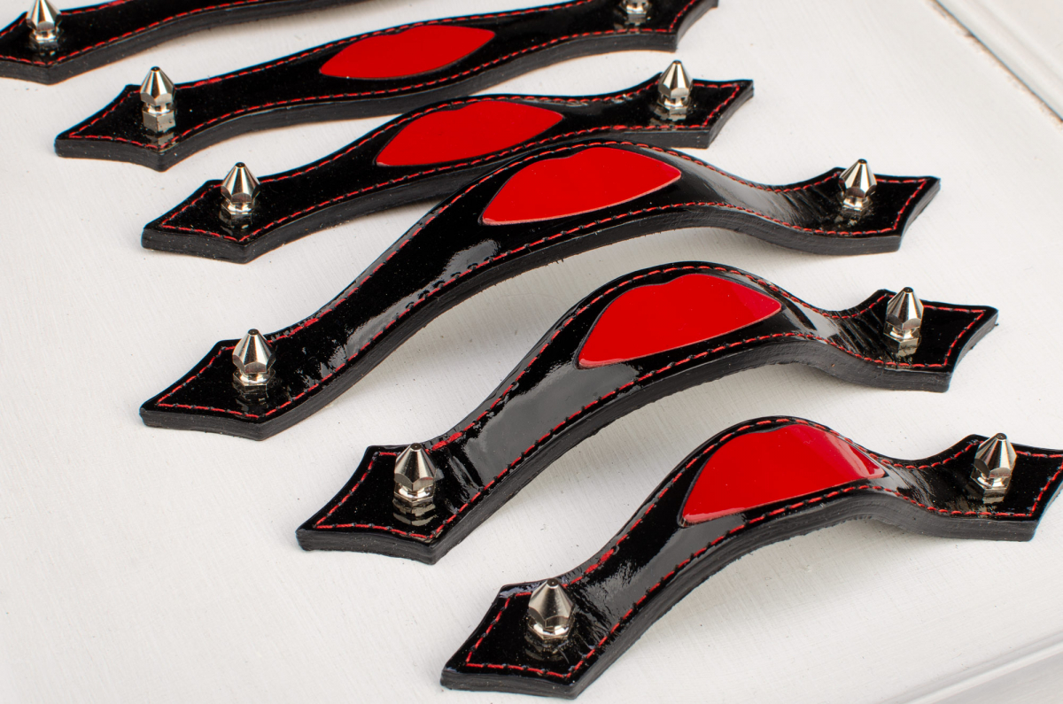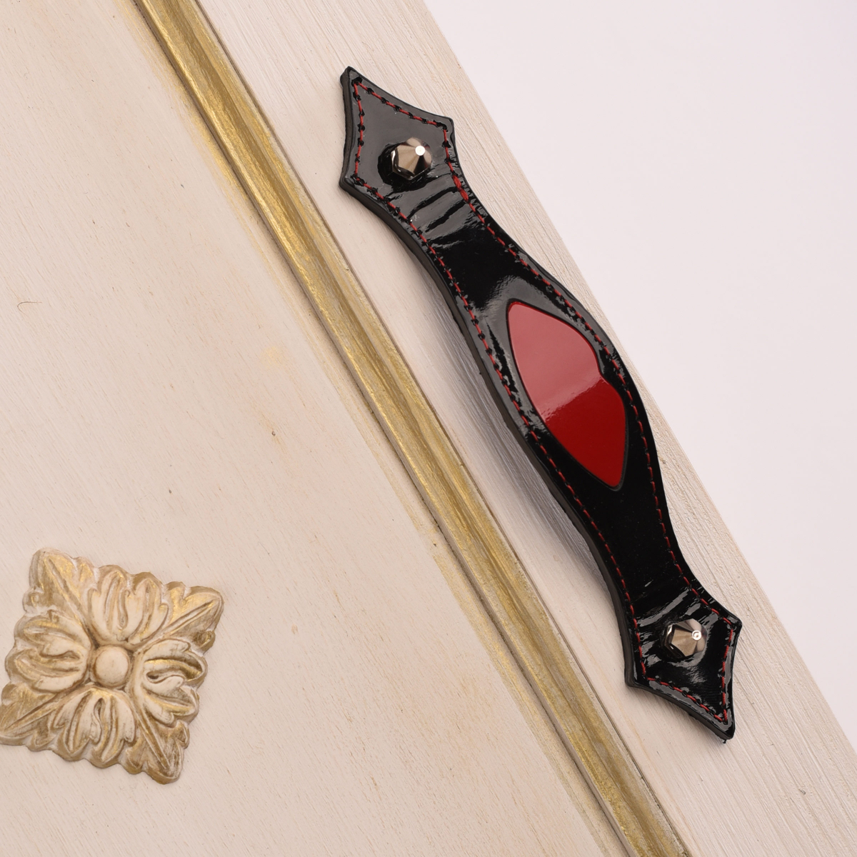 Usnjeni pohištveni ročaji Eros v črno rdečem lak usnju