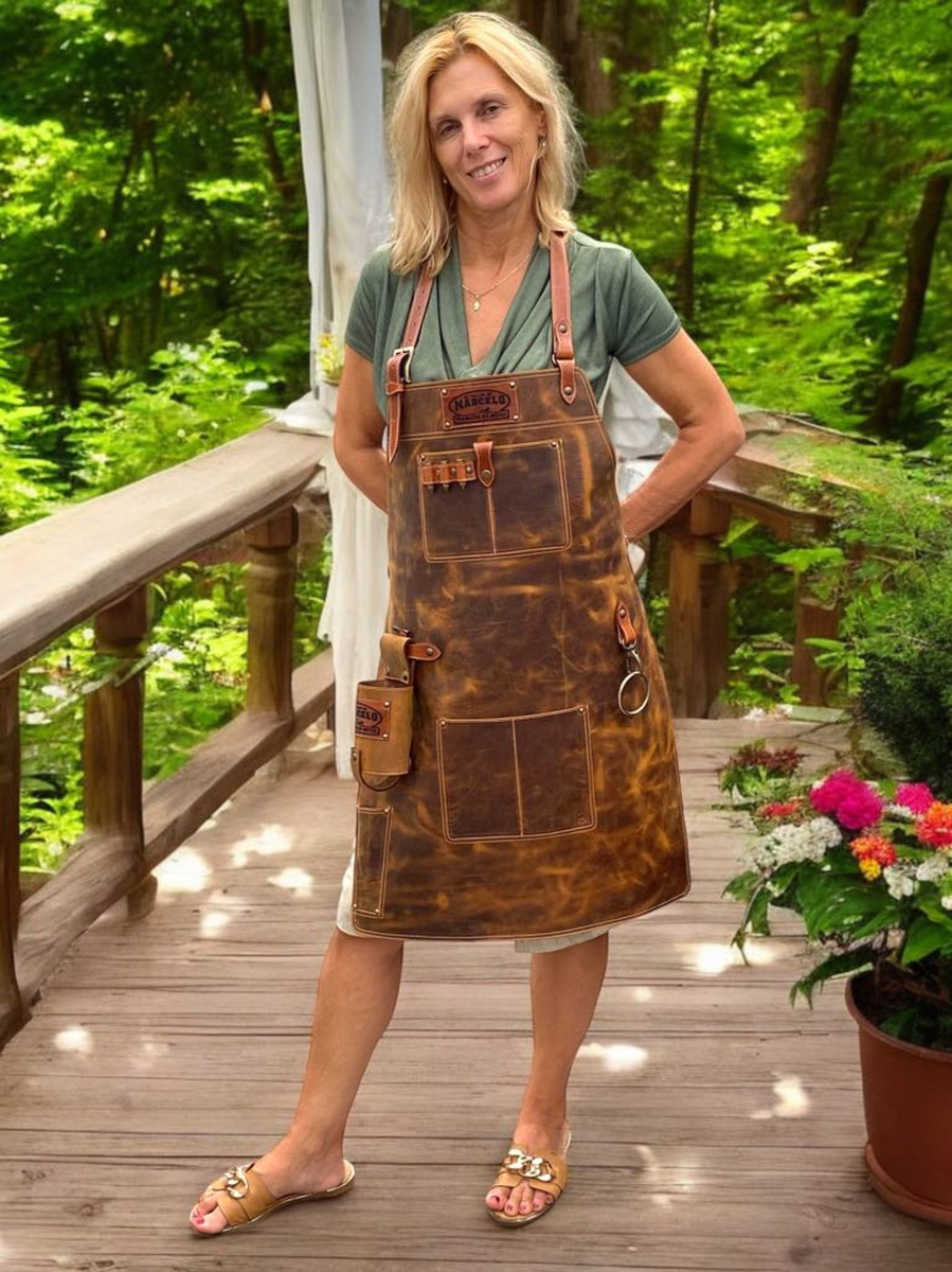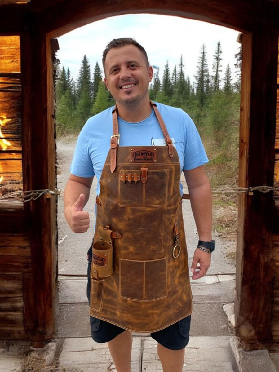 Usnjeni predpasnik je odlična izbira za zaščito pred vročino in maščobami iz žara. Izdelan je iz 100% govejega usnja, ki s staranjem pridobi značilno patino.