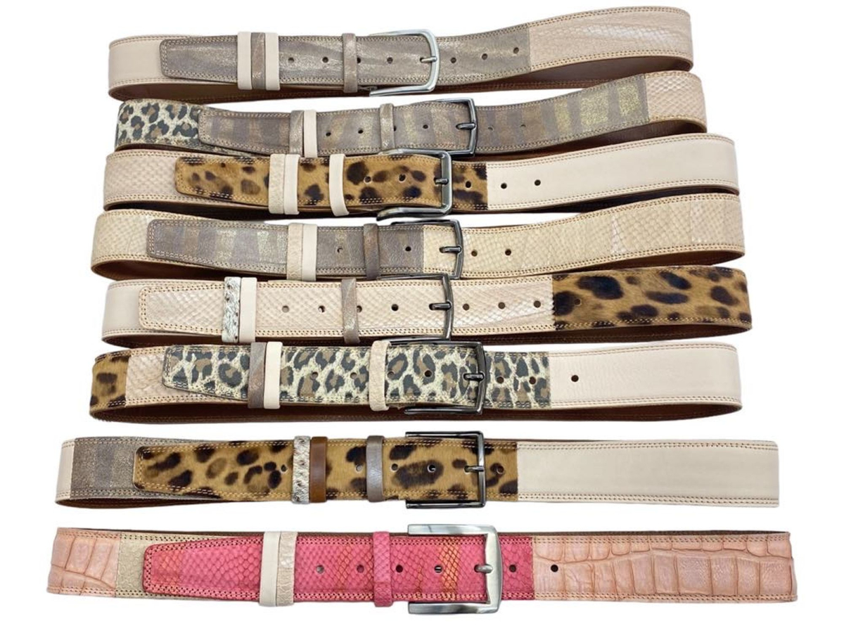 Unikatni peščeni Leopard in Jaguar usnjeni pas 4cm