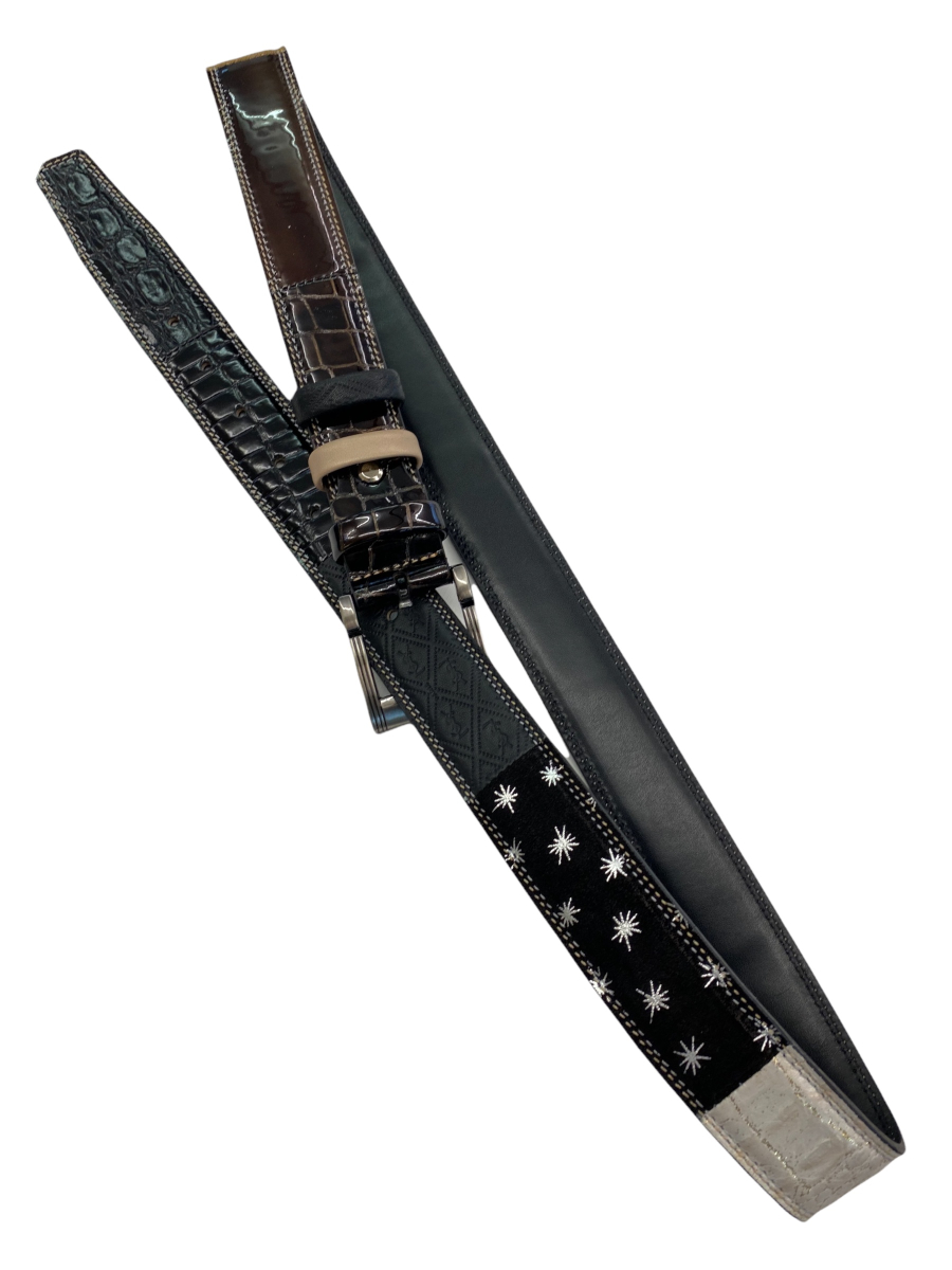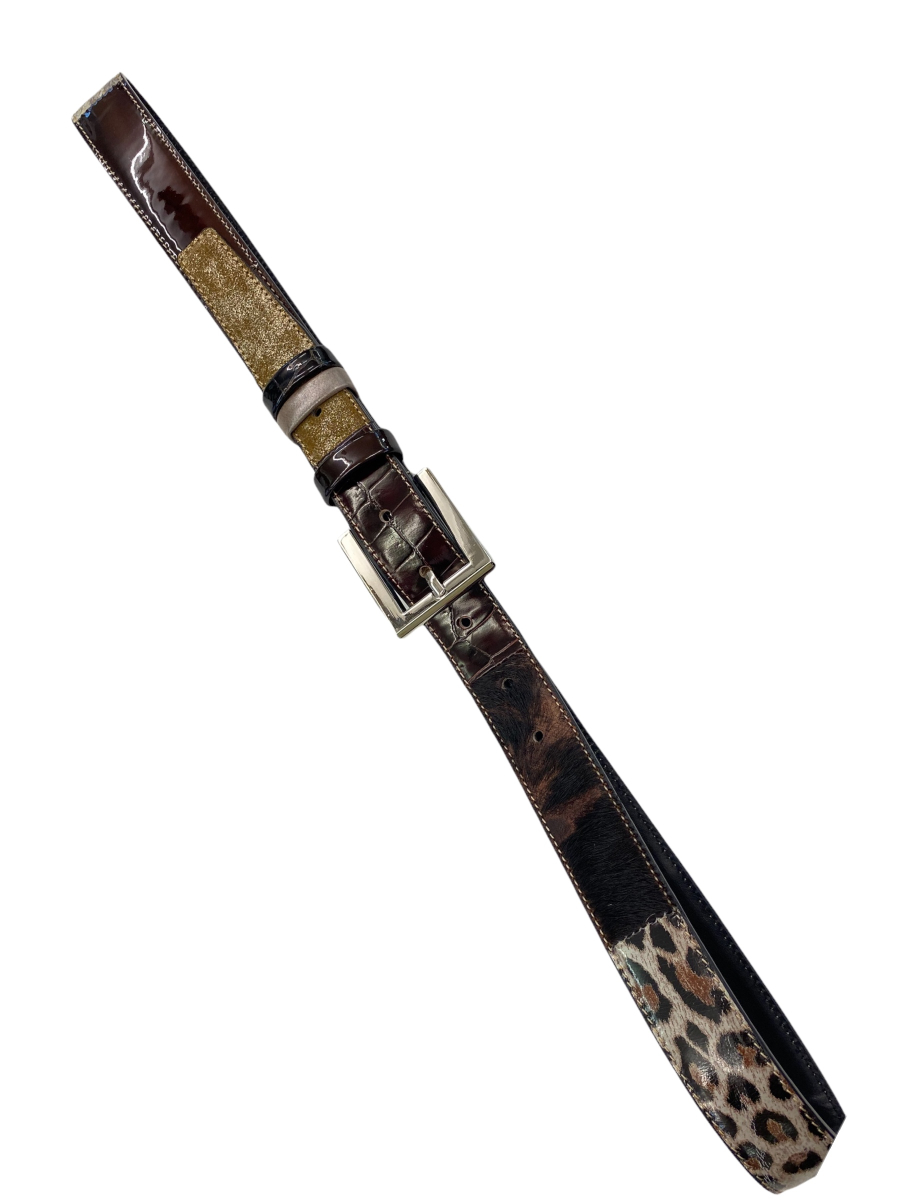 Pas je izdelan v enem kosu iz usnja kravine in kombiniran z imitacijo krokodilje kože.